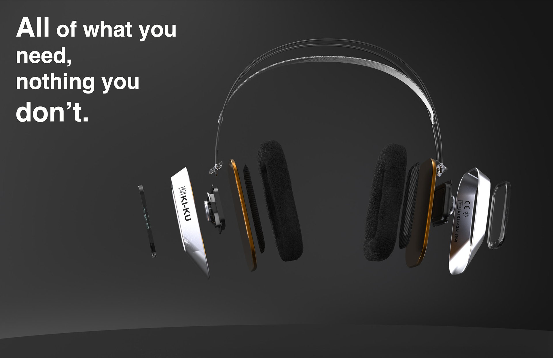 Ki-ku (listen) Quick headphone project for a 3d modeling class to practice rendering. Essential, modern, clean headphones for someone on the move with a focus on longevity and repair ability.